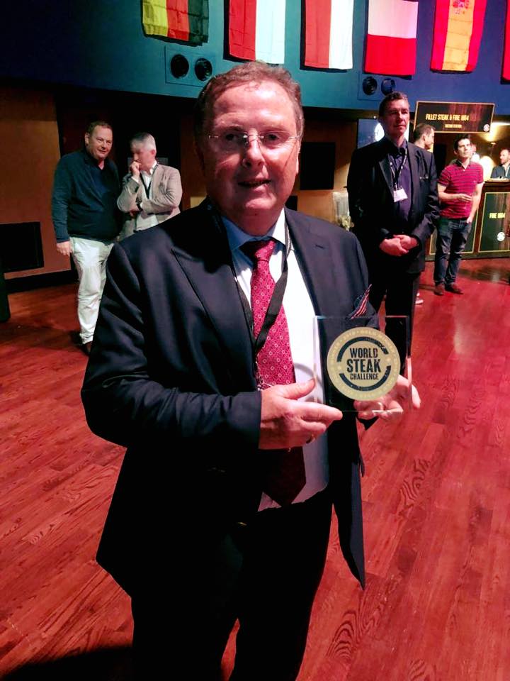 FX Buckley Steakhouses has taken gold for their grass-fed Aberdeen Angus fillet, raised in Ireland and sold at our Dublin restaurant. The award was given at this year’s World Steak Challenge held in Dublin. They are amongst 15 other producers and businesses that have received medals at this year’s competition. Why not join them for a steak to celebrate ! Des Buckley pictured below holding gold.